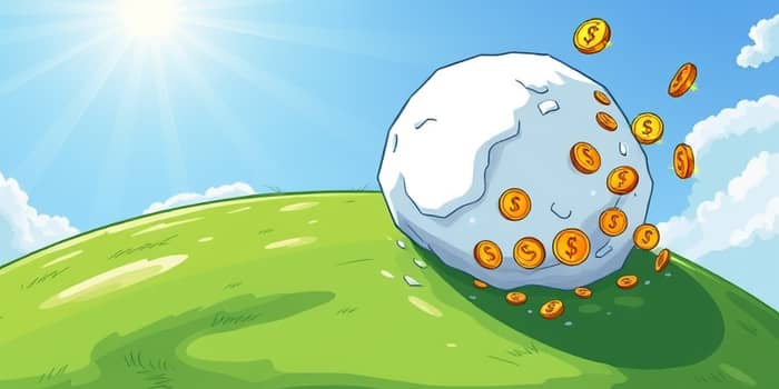 Imagine a tiny snowball at the top of a hill, growing larger and faster as it rolls down, gathering more snow with each turn.